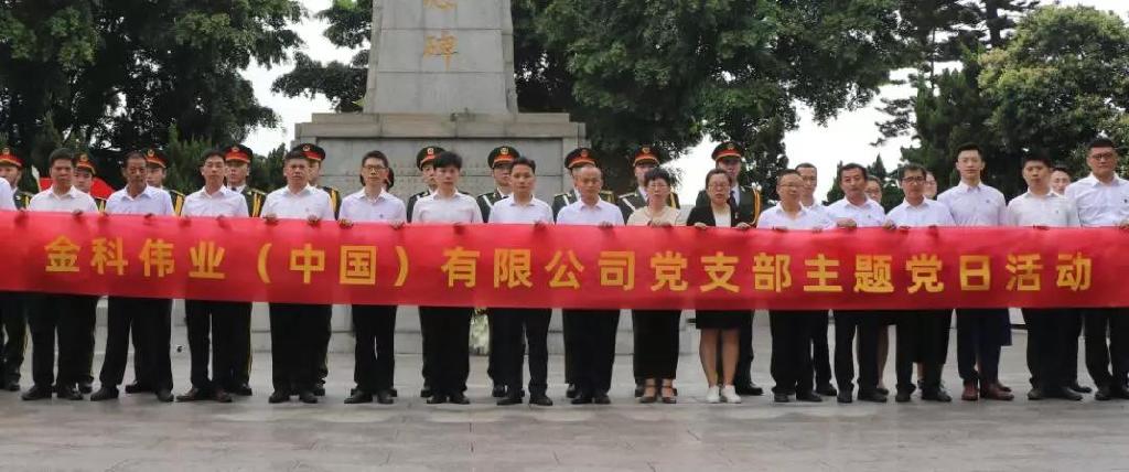 升国旗仪式结束后,金科伟业(中国)有限公司党支部全体党员、工作积极分子和各部门积极青年,来到黄江革命烈士陵园,缅怀瞻仰革命烈士,并敬献花篮。期间,金科伟业全体党员重温入党誓言。